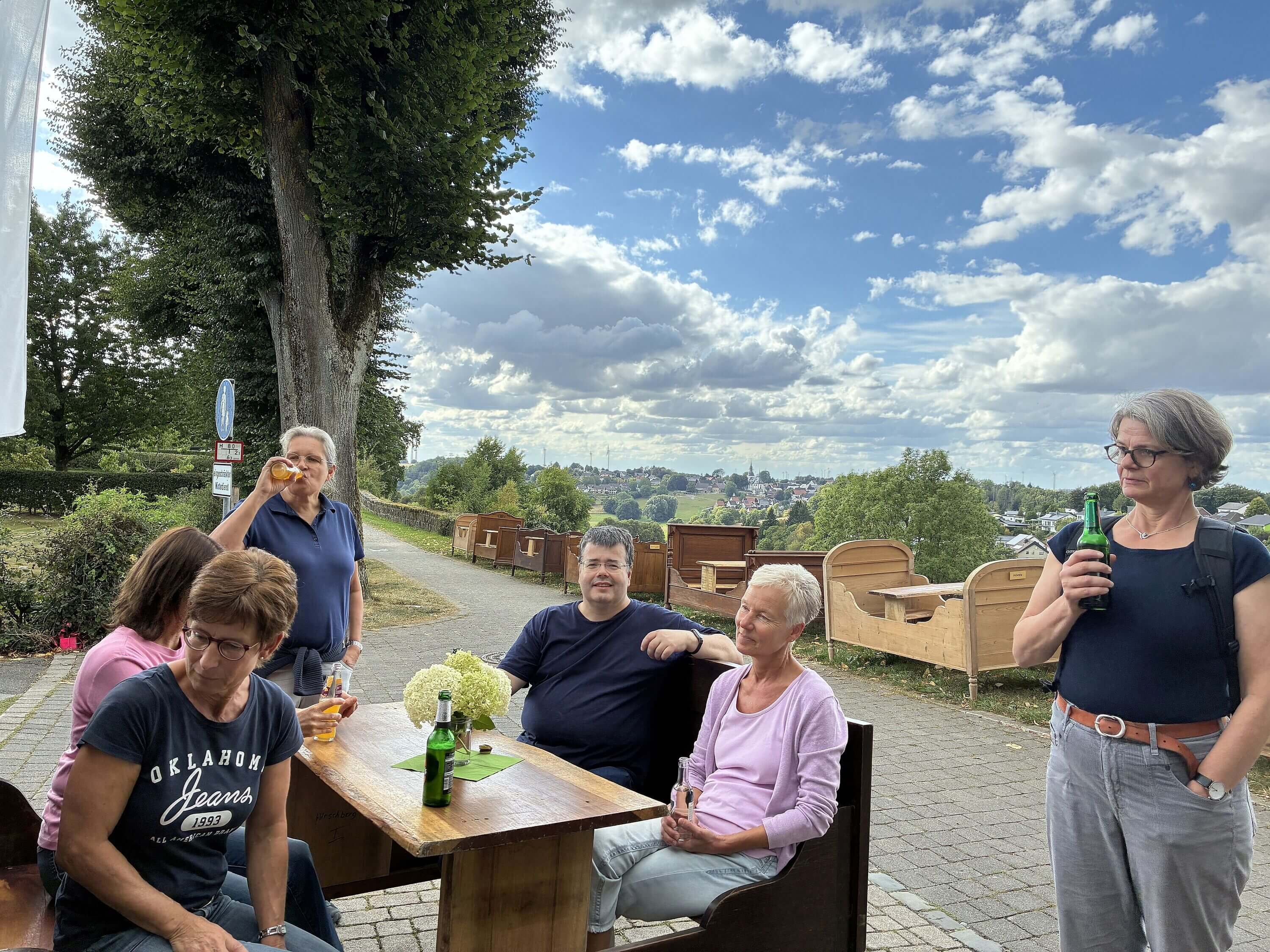 Die aktiven Mitglieder der Wandergruppe und der Trekkinggruppe werden am 30.08. und am 31.08. ein Bettencafé betreiben. Bei selbstgebackenem Platenkuchen, Kaffee und kalten Getränken kann man den Blick über die Stadtmauer nach Altenrüthen genießen.